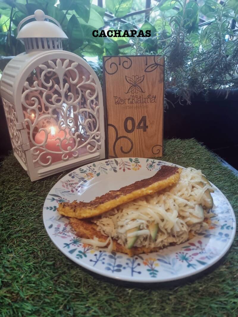 | Cachapa de Pollo | Tortilla preparada con granos de maíz dulce y leche, cocida en plancha y rellena con una cremosa mezcla de pollo guisado y desmenuzado en salsa suave de mayonesa. Se recomienda adicionar tropezones de aguacate fresco. | 10,90 |